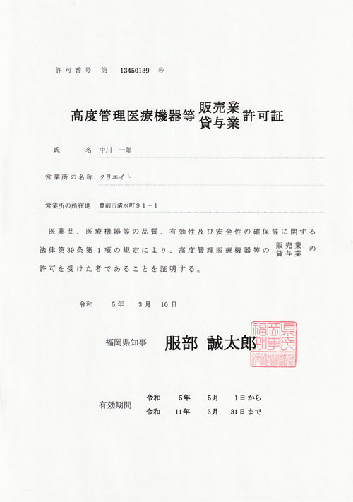 高度管理医療機器等販売賃貸業 [許可番号 第13450139号]