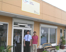 福岡放送の福岡竜馬さんが取材に来られました。左写真は二人用聴診器で中川店長の心音を聴いています。中央・右写真は、福岡さんと一緒に、記念写真を撮らせていたたきました。 |