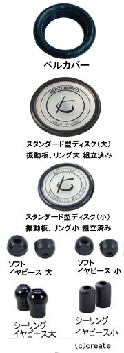 ![]() ダイヤフラム面は、ディスクに振動板をリングで取り付けた構造をしております。ディスクとチェストピース本体にネジが切ってあり、ディスクを回転してチェストピースに着脱します。ディスクは全体を軽くつまみ、回転してチェストピース本体か着脱してください。 |